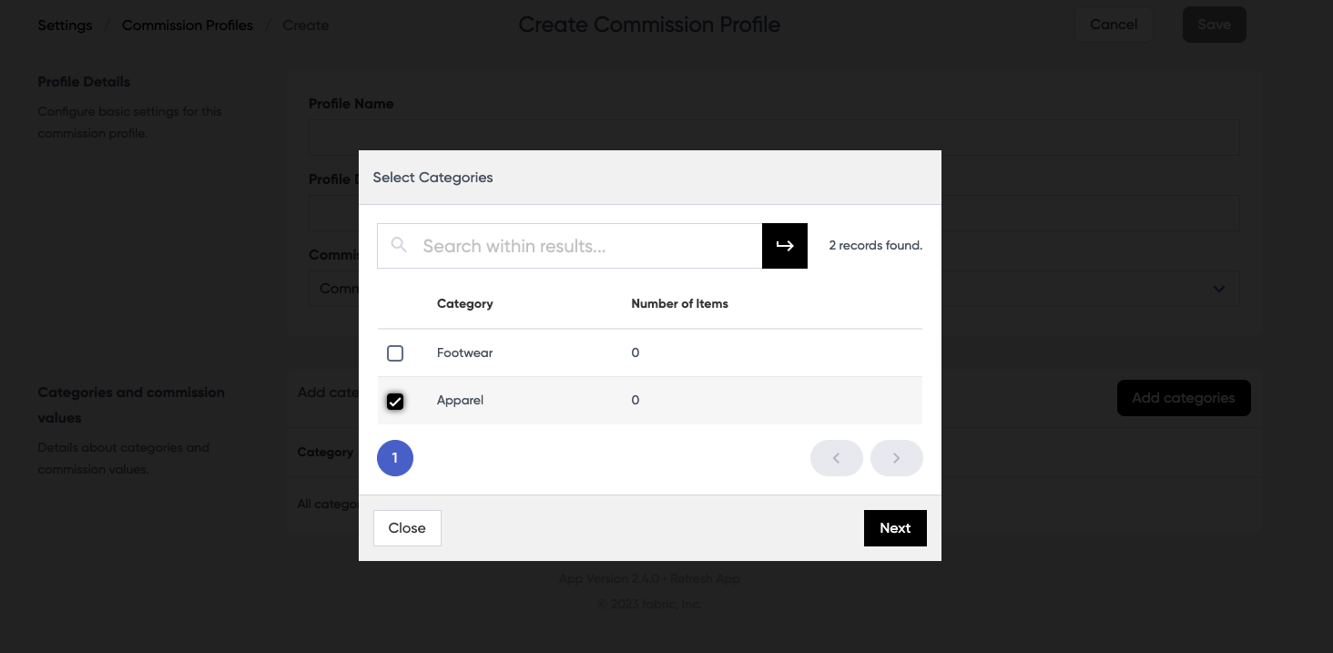 Commission Profile Settings